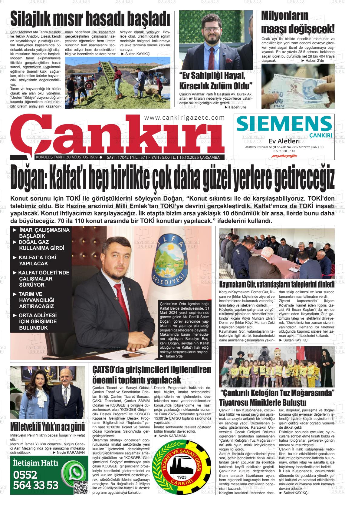 Çankırı Yerel Gazeteleri 02 Mart 2026, Pazartesi Günü Manşeti