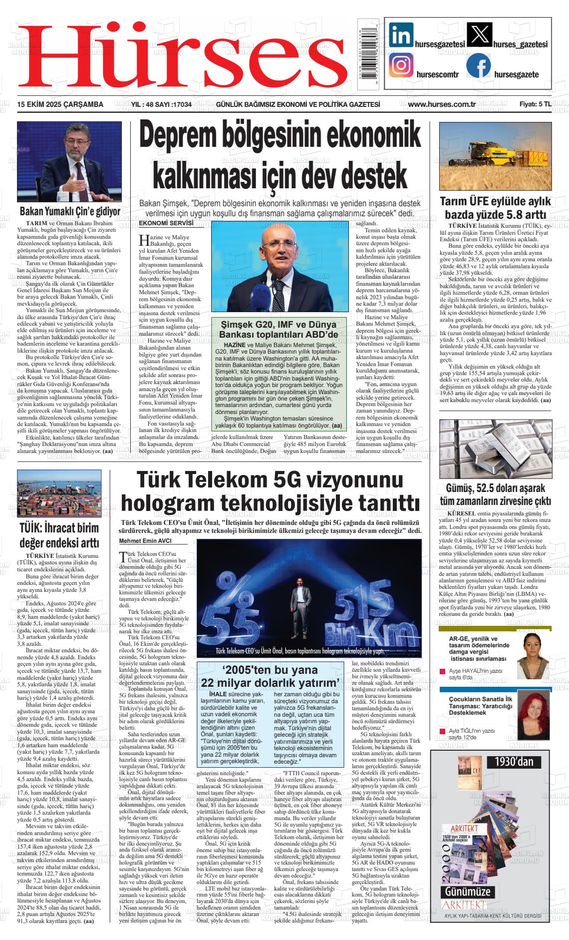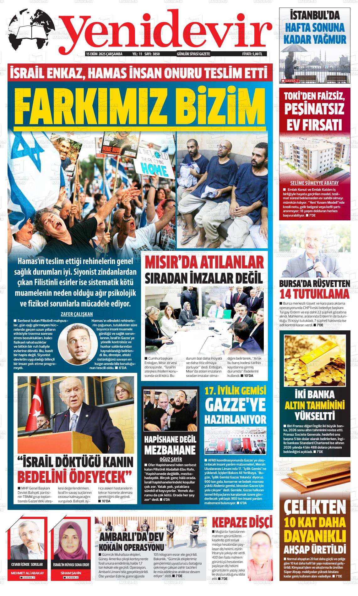 İstanbul Yerel Gazeteleri 15 Ekim 2025, Çarşamba Günü Manşeti