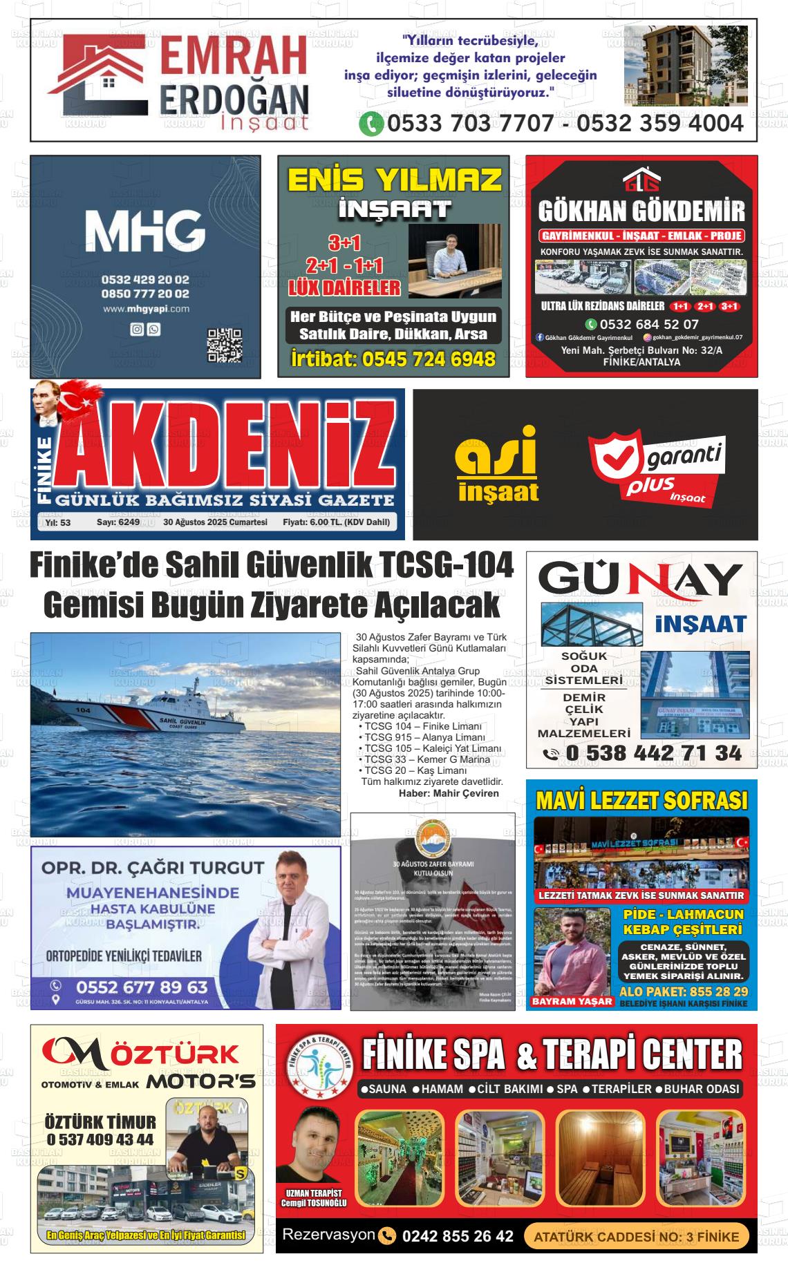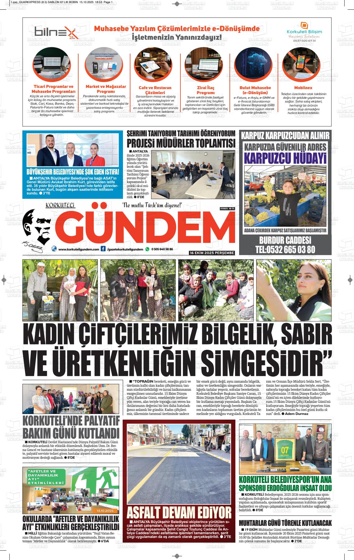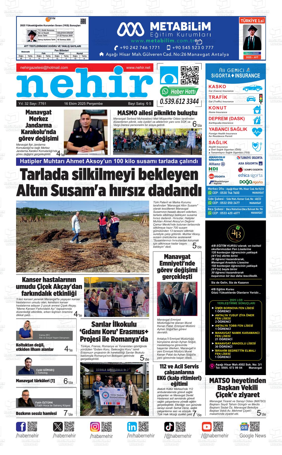 Antalya Yerel Gazeteleri 16 Ekim 2025, Perşembe Günü Manşeti