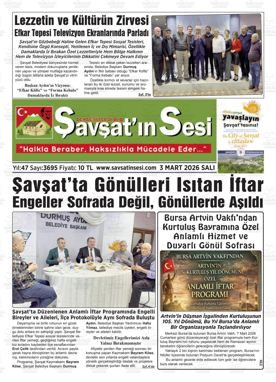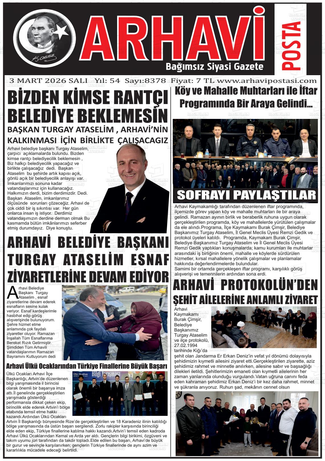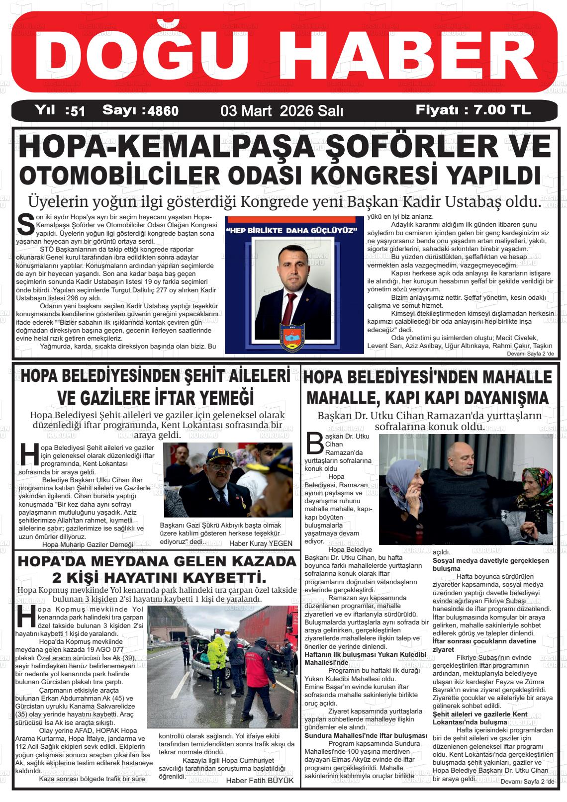 03 Mart 2026, Salı Günü Manşeti