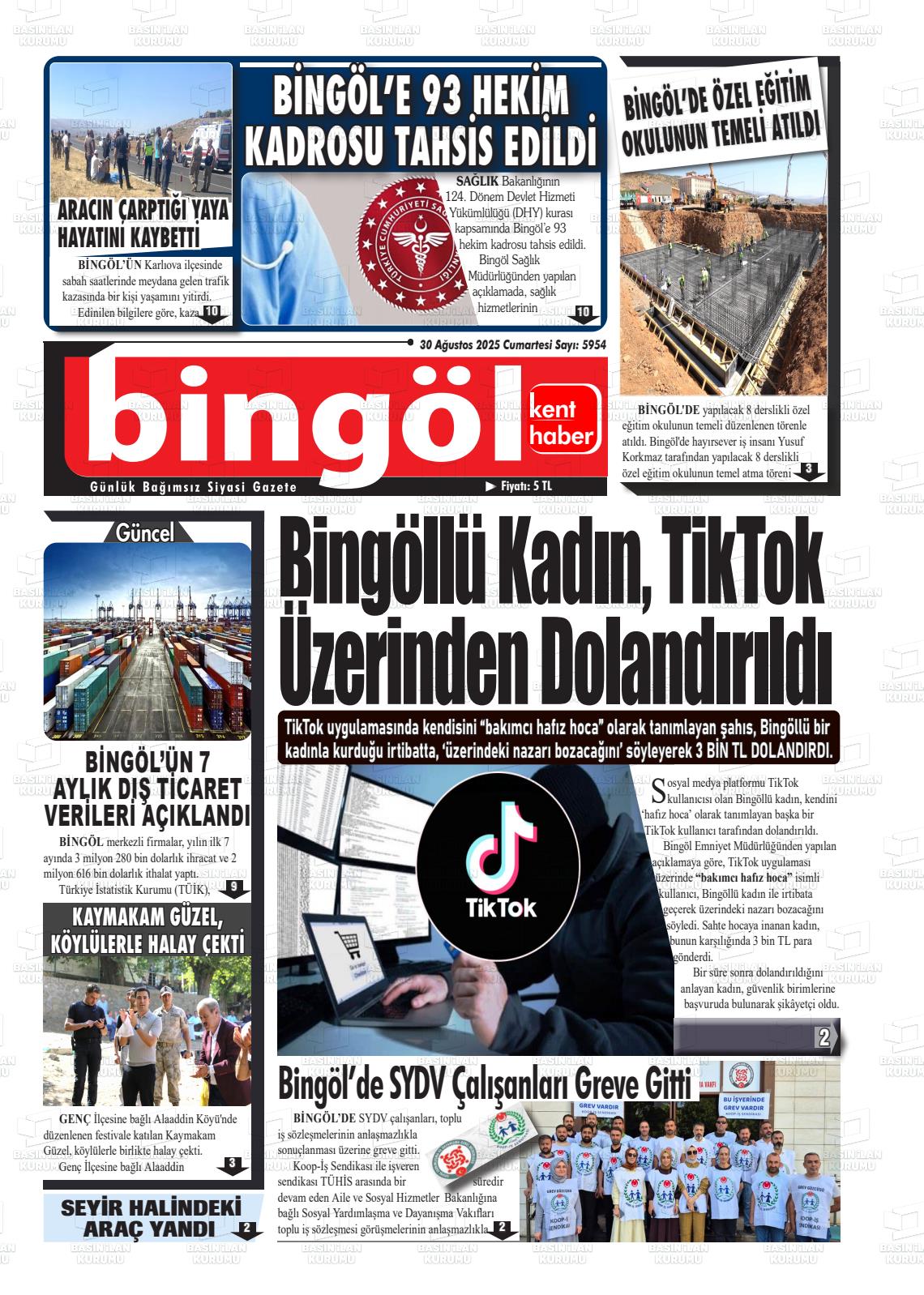 Bİngöl Yerel Gazeteleri 15 Nisan 2026, Çarşamba Günü Manşeti
