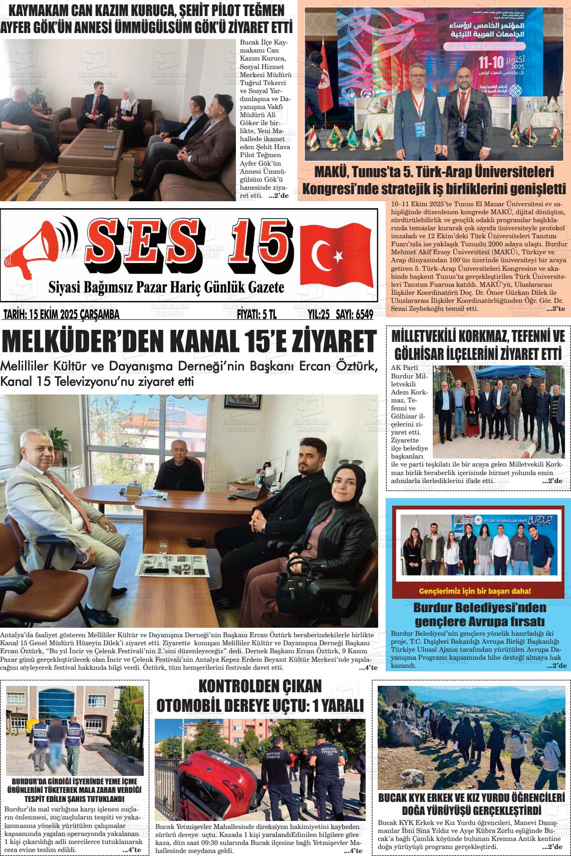 15 Nisan 2026, Çarşamba Günü Manşeti