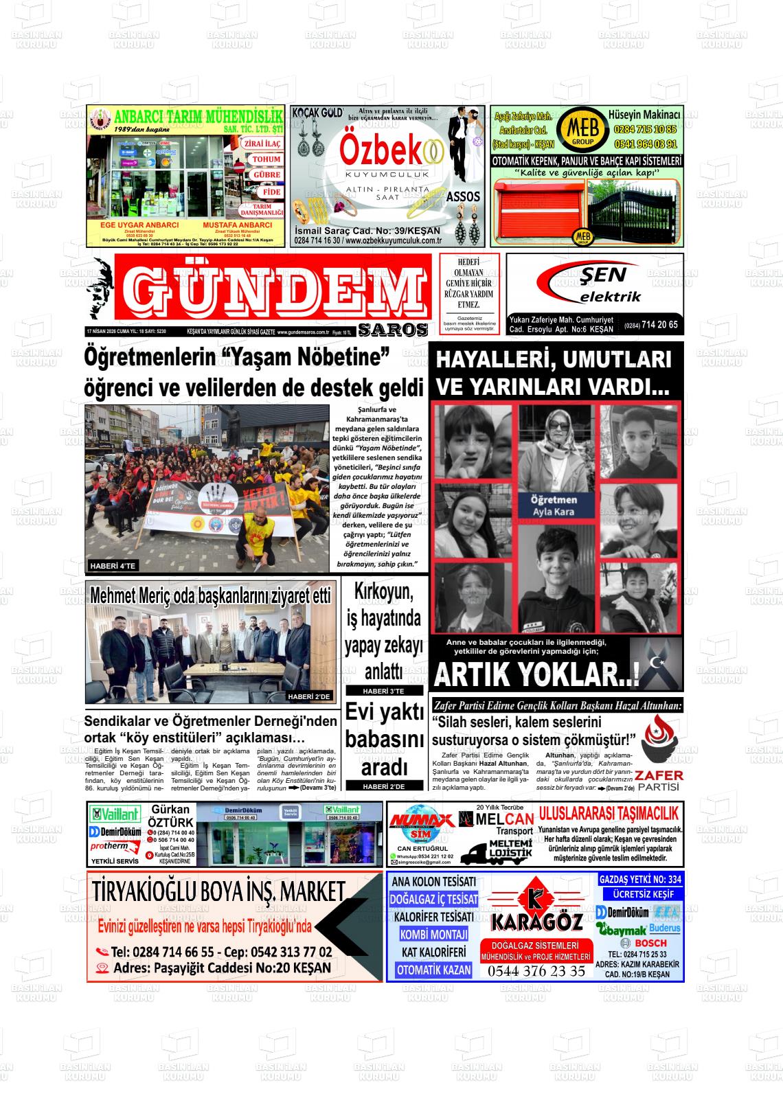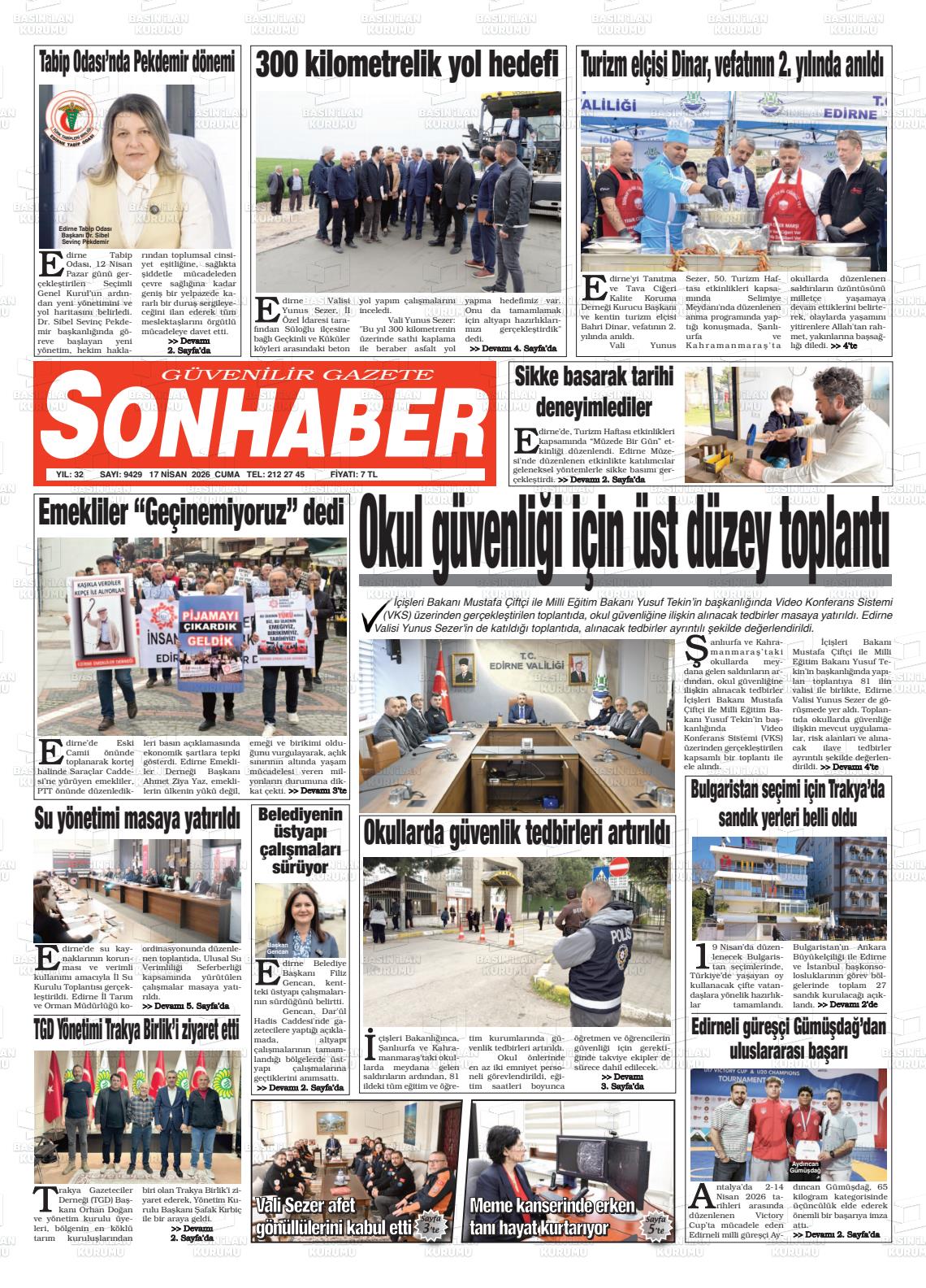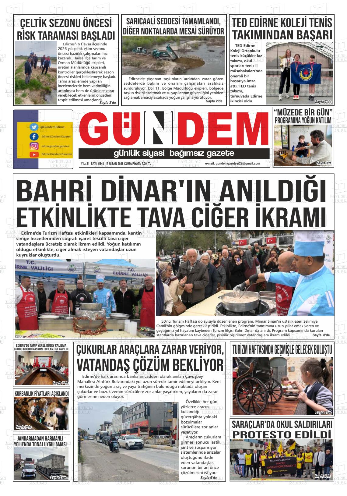 Edİrne Yerel Gazeteleri 13 Nisan 2026, Pazartesi Günü Manşeti