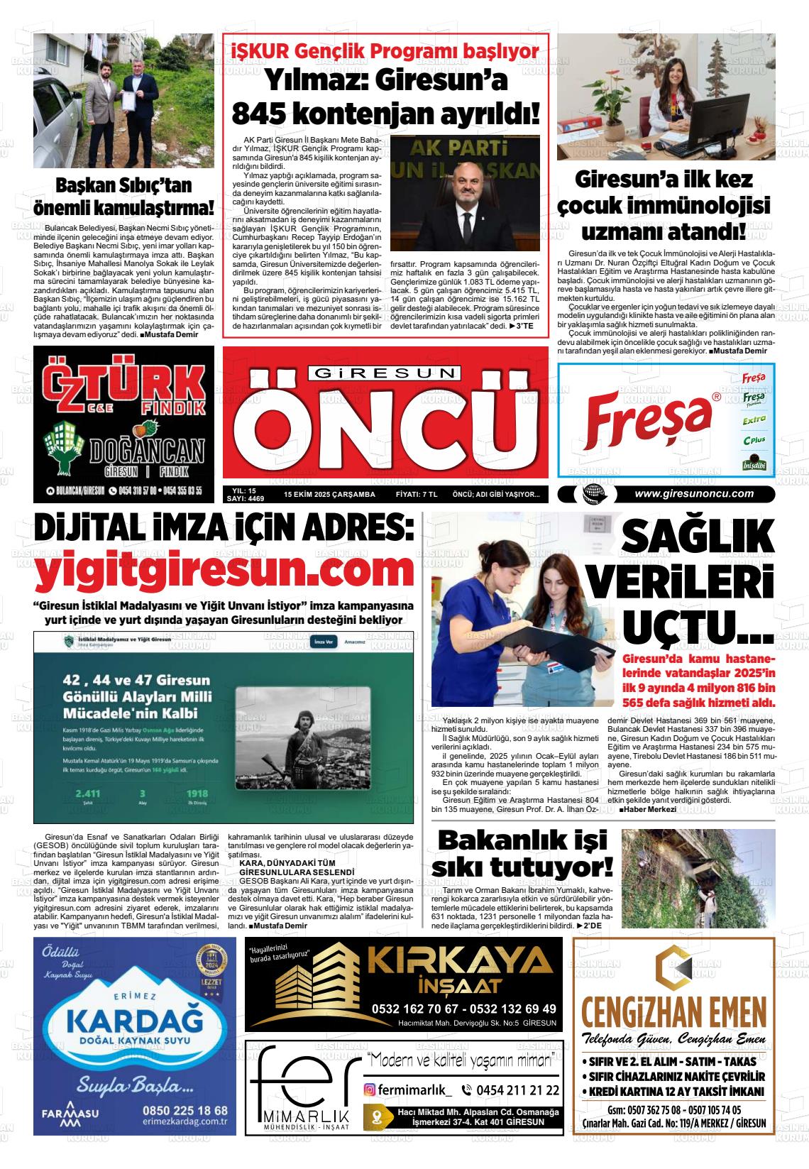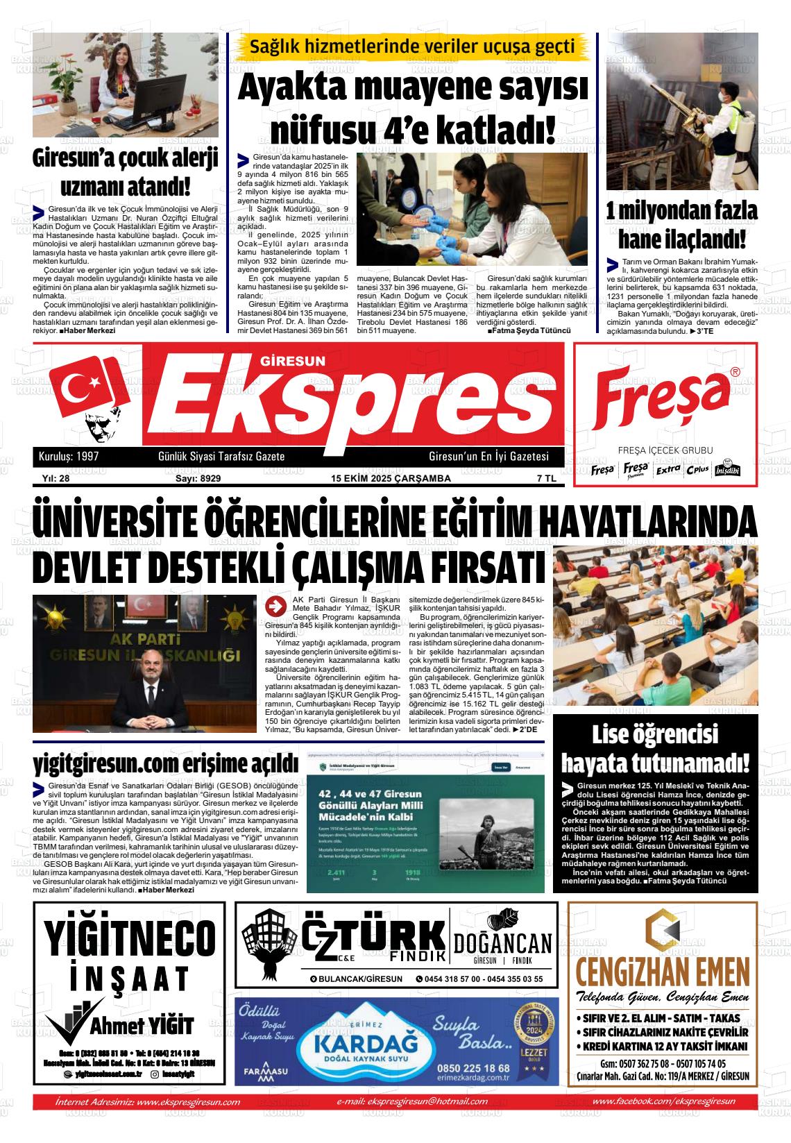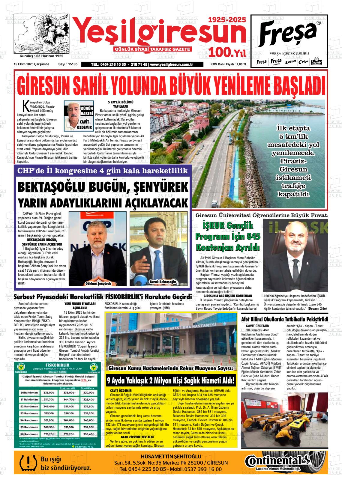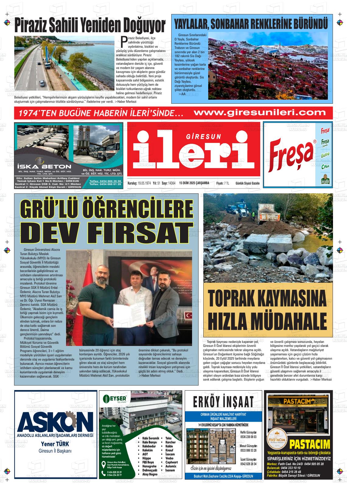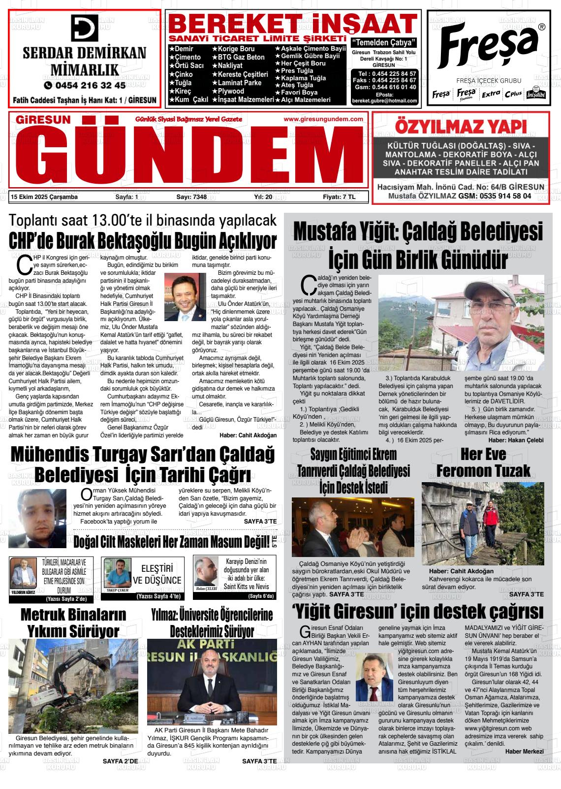 Gİresun Yerel Gazeteleri 03 Mart 2026, Salı Günü Manşeti