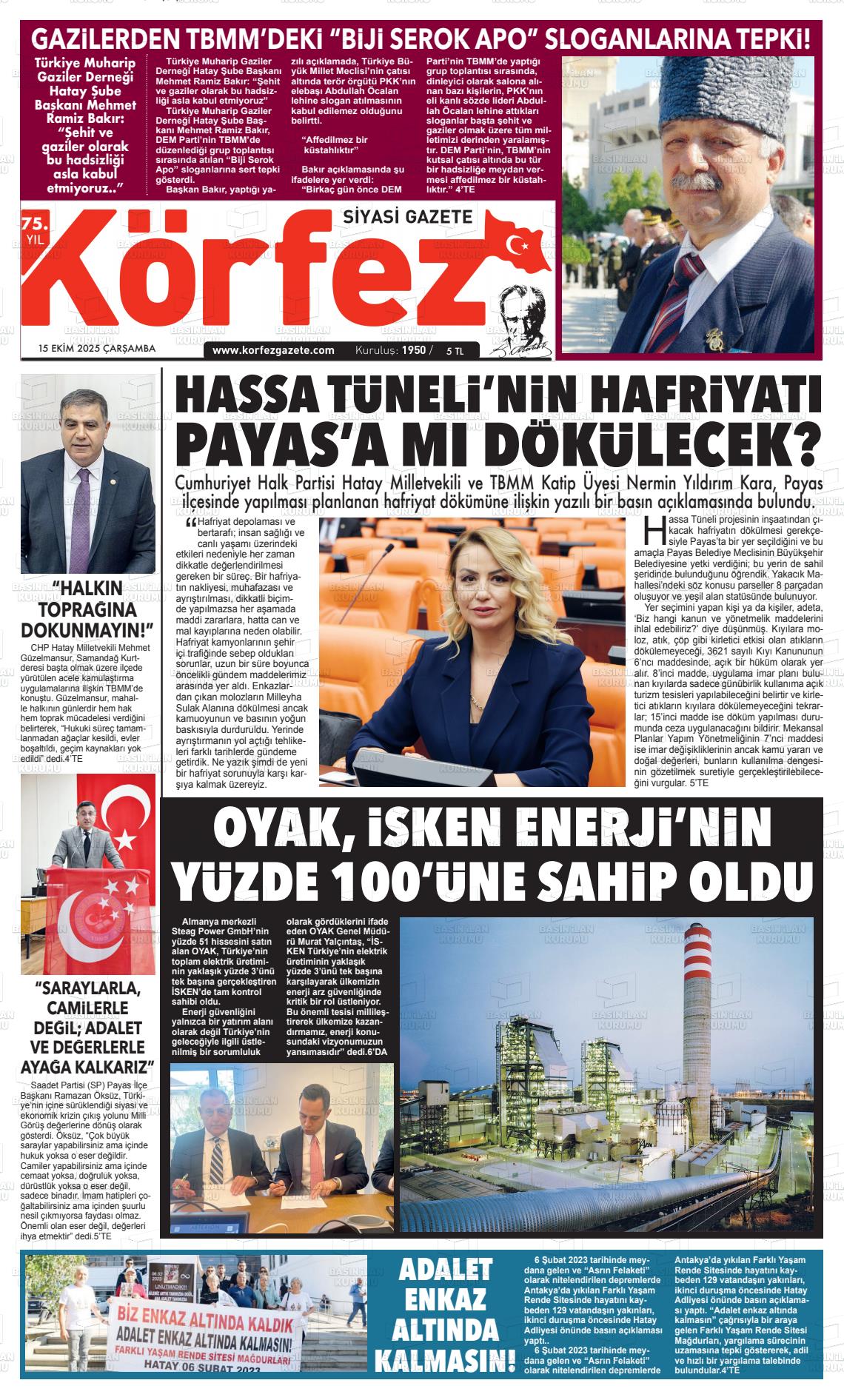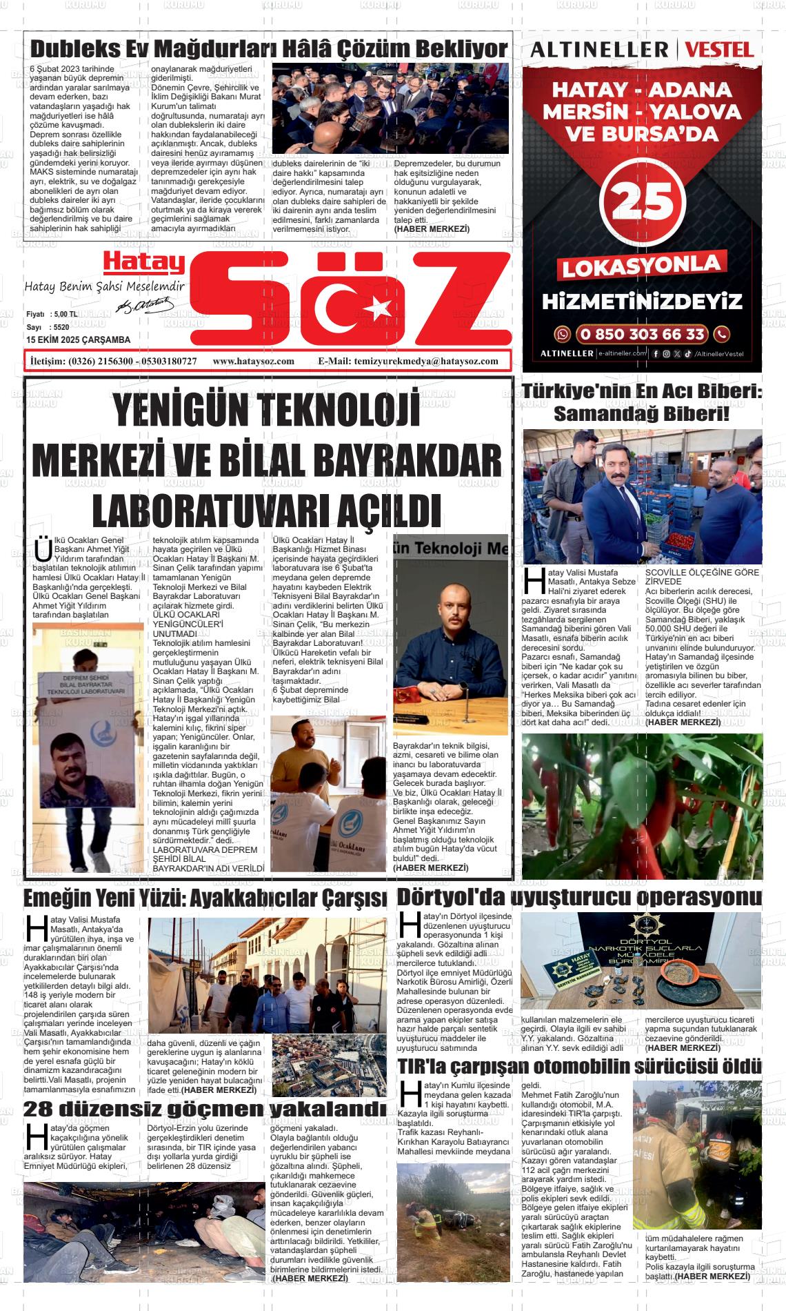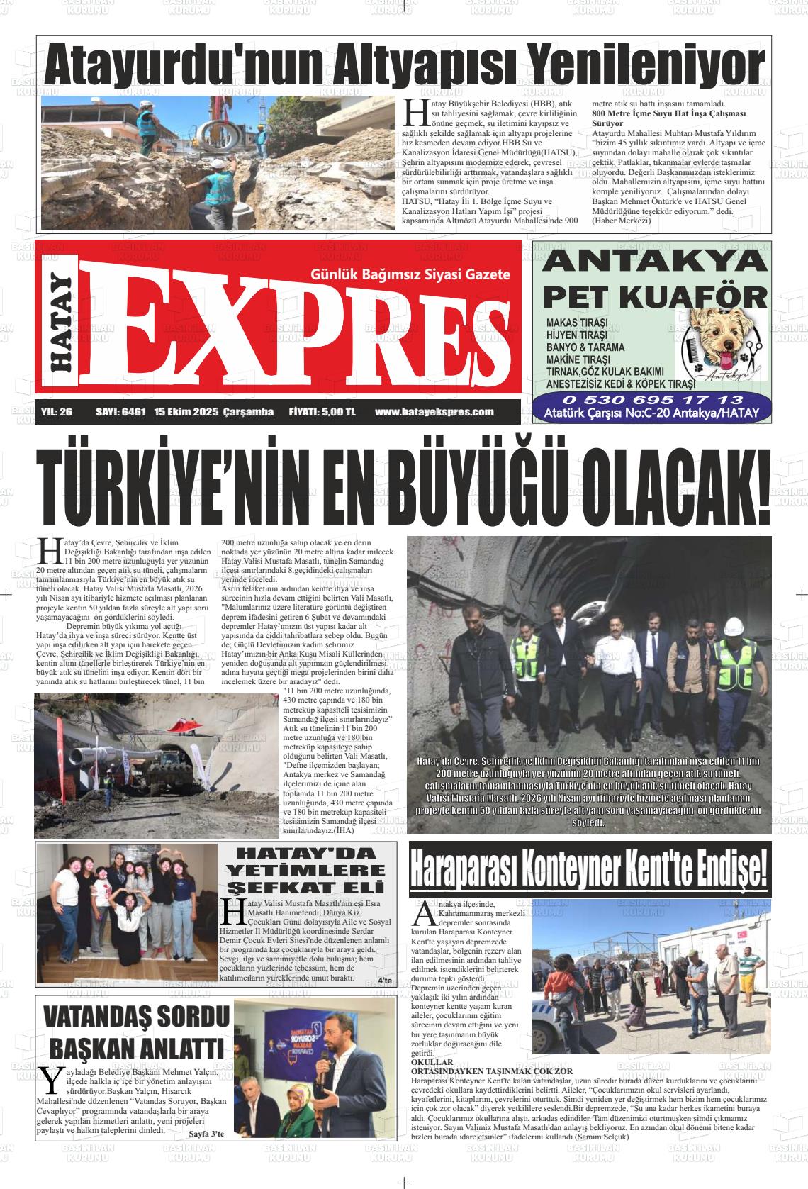 Hatay Yerel Gazeteleri 15 Nisan 2026, Çarşamba Günü Manşeti