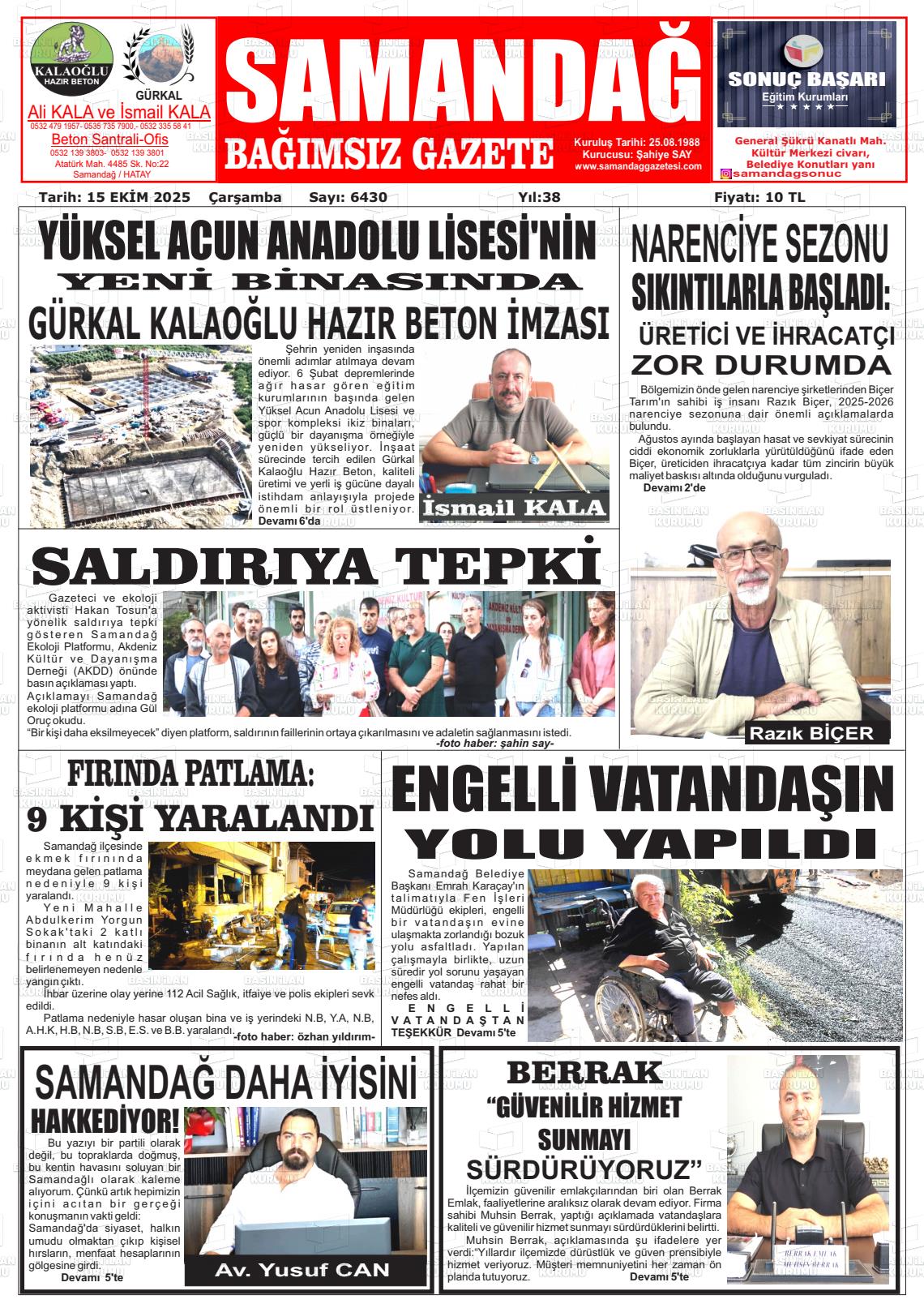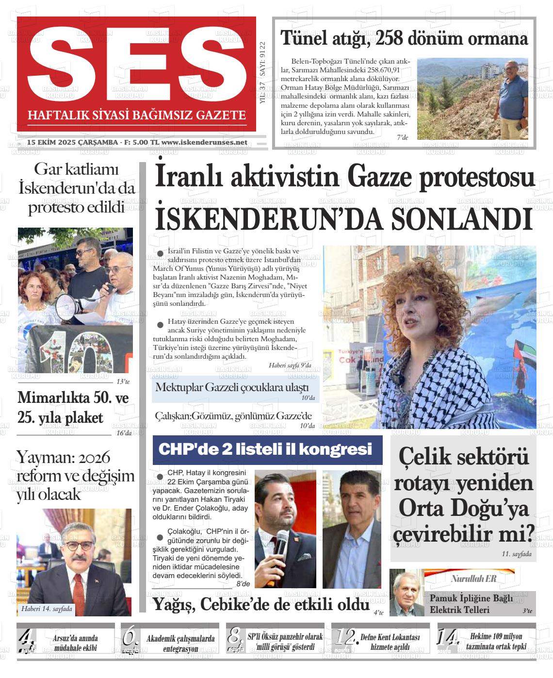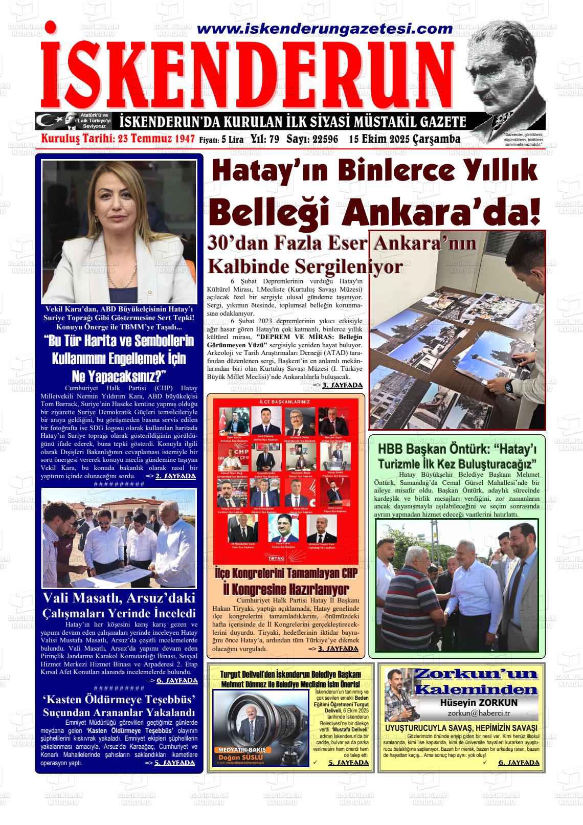 Hatay Yerel Gazeteleri 15 Nisan 2026, Çarşamba Günü Manşeti