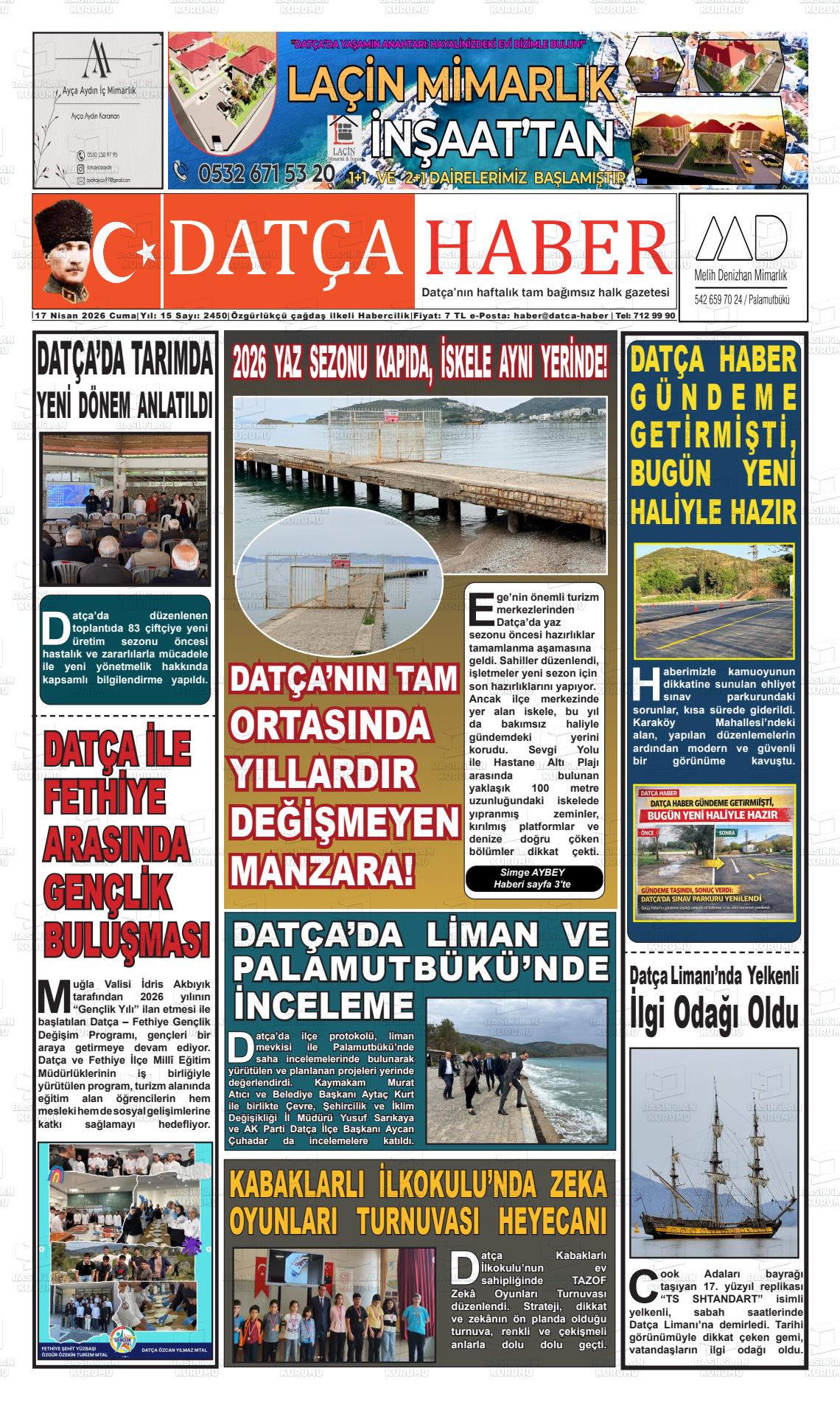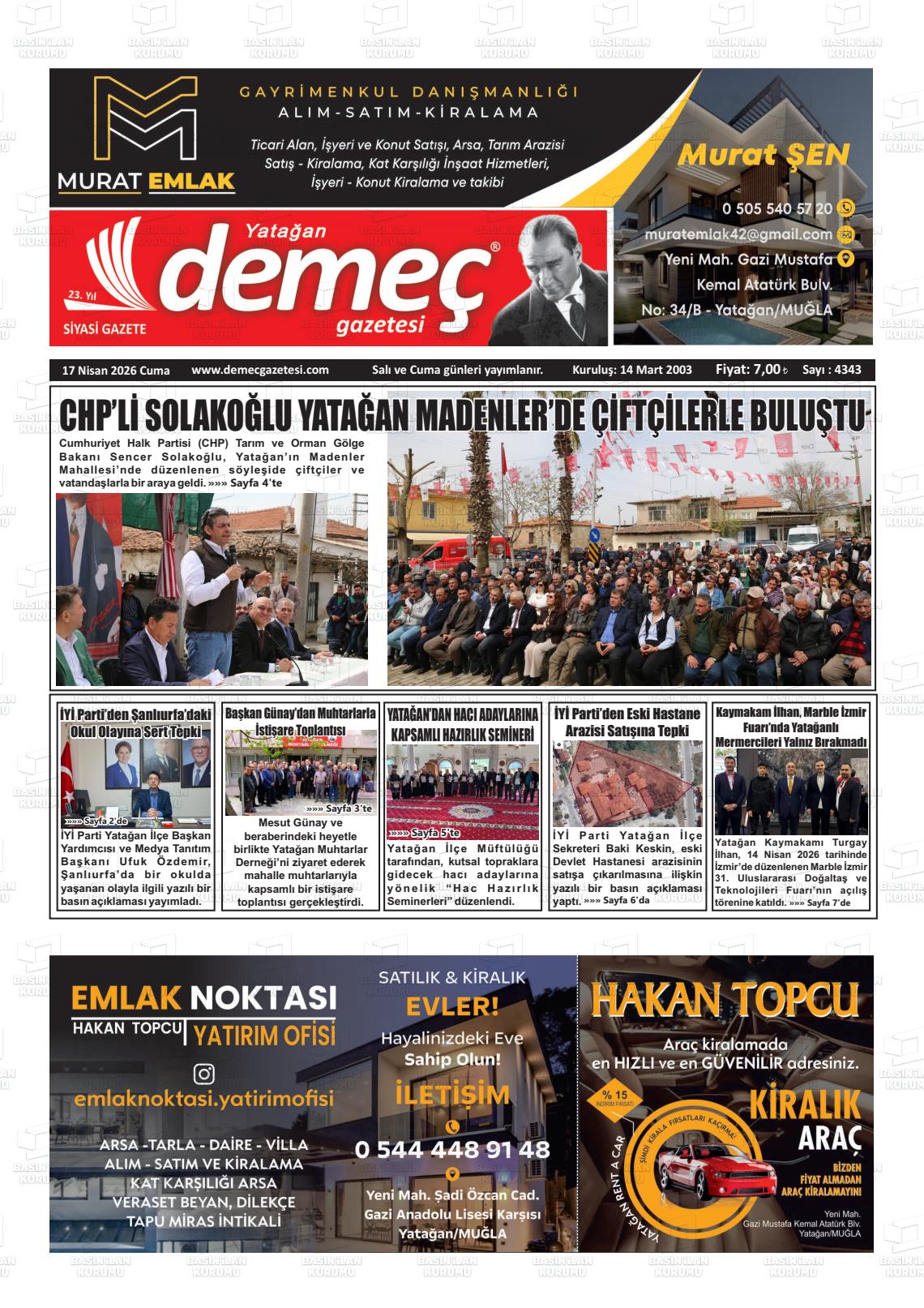 Muğla Yerel Gazeteleri 17 Nisan 2026, Cuma Günü Manşeti