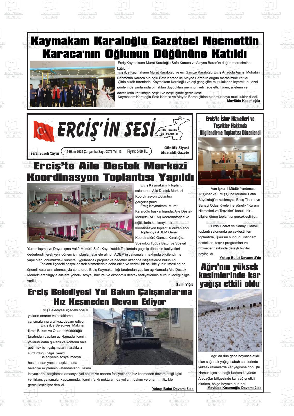 Van Yerel Gazeteleri 15 Nisan 2026, Çarşamba Günü Manşeti